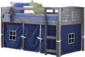 This twin loft bed comes in an antique grey color it features a blue tent fabric as well as twin louvers for easy getting on / off. The item supports heavy users well and is also firm and steady. Consumers give it thumbs up for the easy layout that makes assembly very easy. What’s more, it’s extremely tough to sustain the make use and misuse too. This minimizes the chances of damage, bending, or breakage.